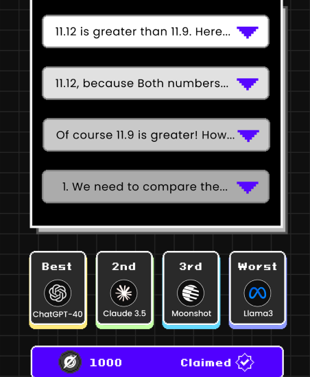 You can rank the quality of answers through a simple drag-and-drop interaction to earn points, or you can do nothing and just chat with AI - **it's completely free**.